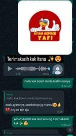 Banyak pelanggan yang memberikan ulasan positif tentang Ayam Geprek Yafi. Berikut beberapa di antaranya: